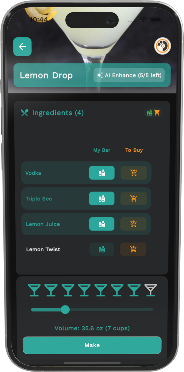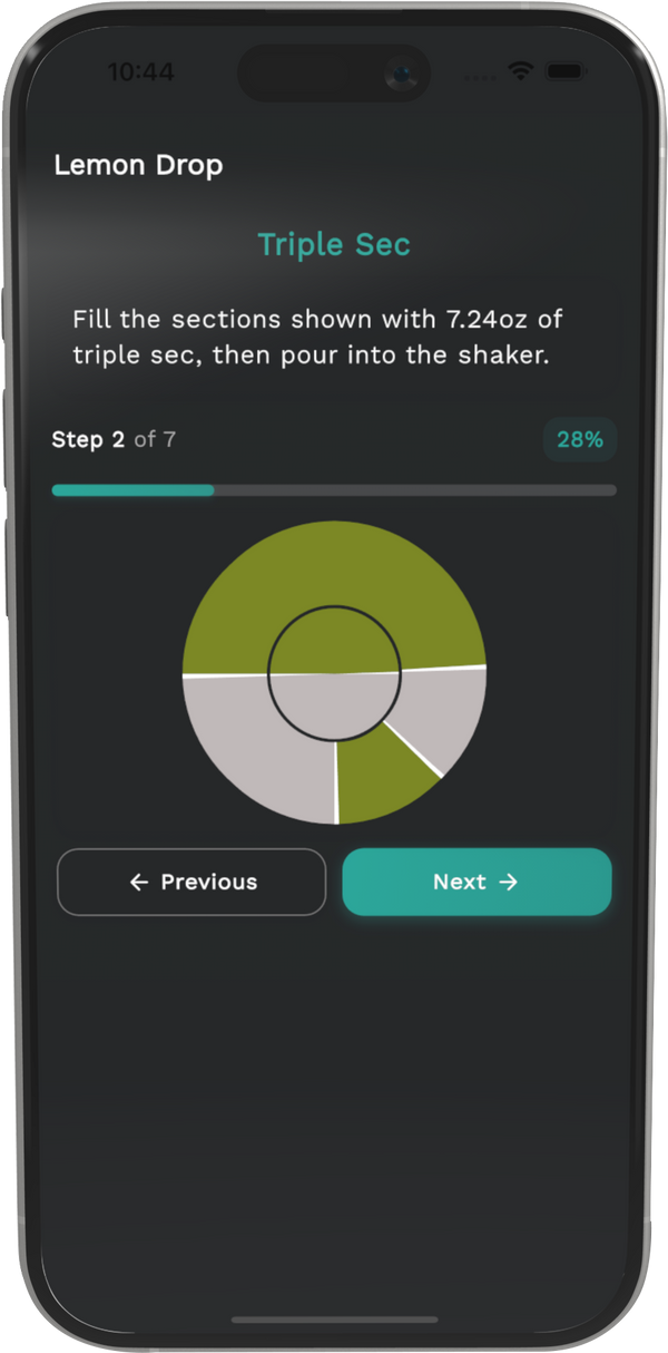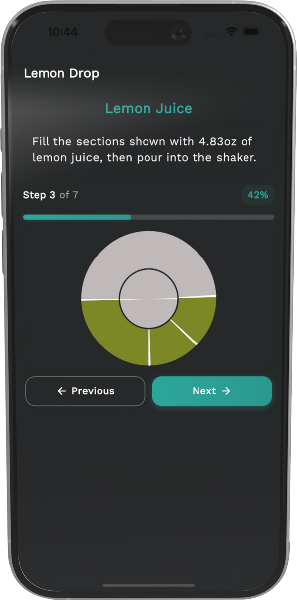 Recipes, guided pours, and smart suggestions that make every drink consistent—and every host confident.